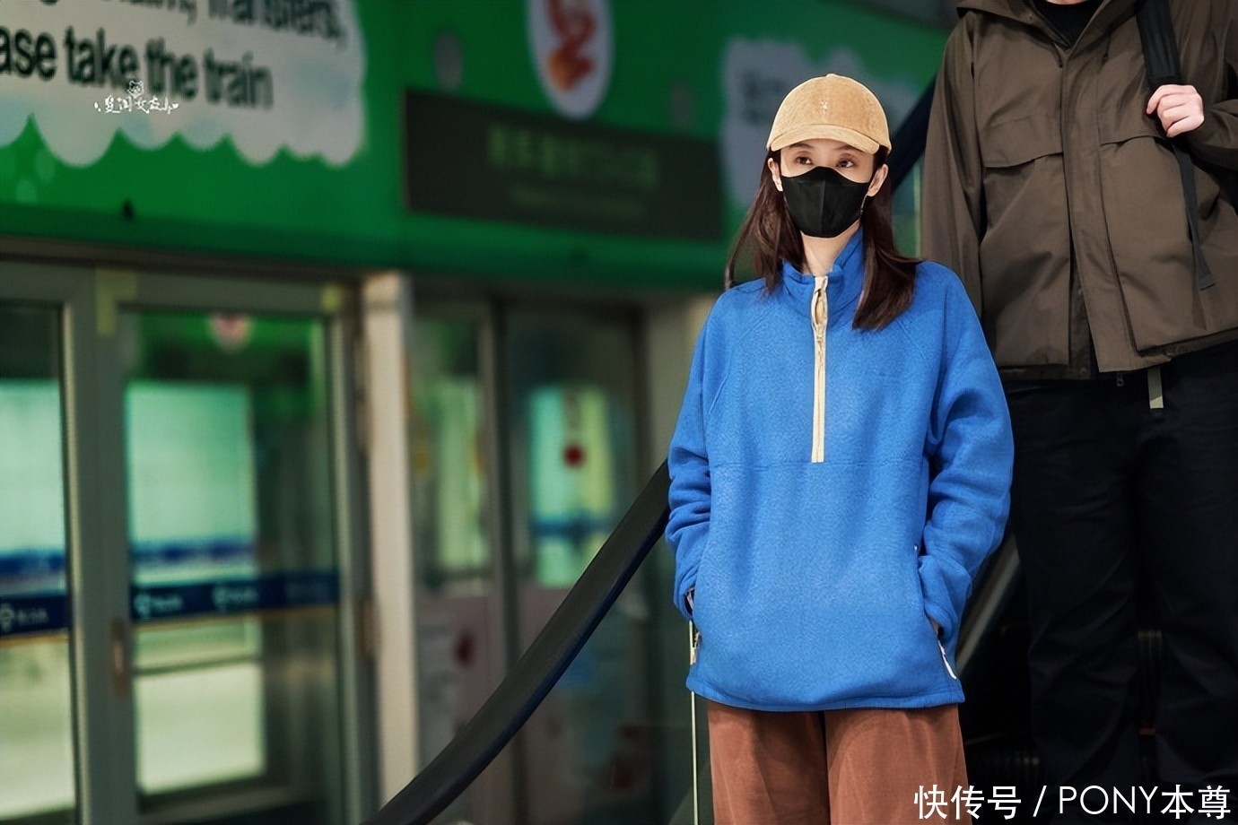 搭配的浅棕色棒球帽则与阔腿裤的颜色相呼应,为整体的御姐风增添了几分休闲感,避免了造型过于严肃,个性又时尚。